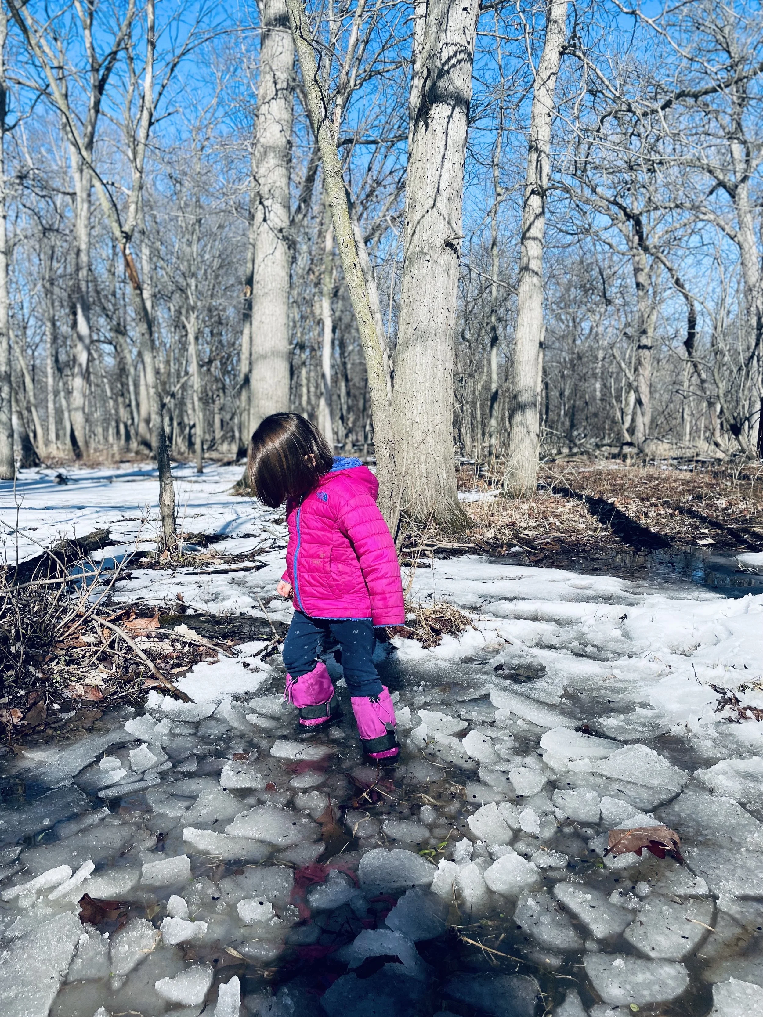 So I piled them in the car and drove out to the woods. They ran wildly there, too. They climbed trees. They stomped through frozen-over ponds; they pointed out brightly-colored birds and random still-green foliage memorialized under icy waters. They commented on the squishy sounds their boots made, and the satisfying crunch of frost beneath them when they stomped.